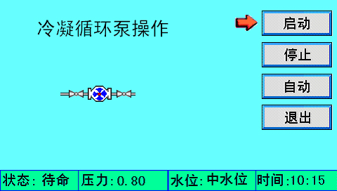 ”,進(jìn)入冷凝循環(huán)泵手動(dòng)操作畫面。
