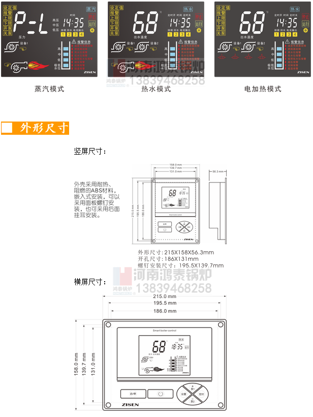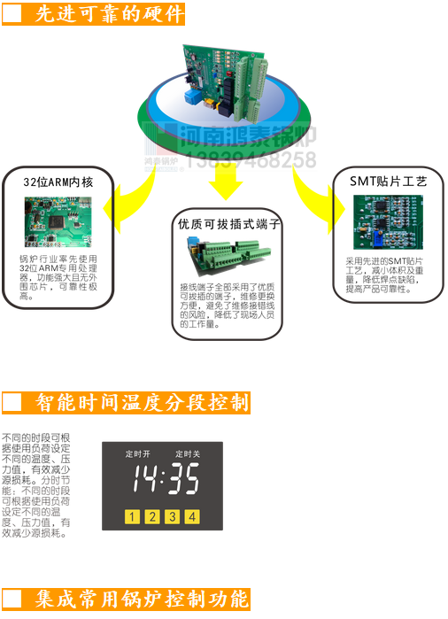 SBC-Z-Y1智能鍋爐控制器采用高對(duì)比度7寸黑晶彩色液晶屏:人機(jī)界面豪華,中文顯示;32位ARM處理器:采用工業(yè)級(jí)32位ARM處理器,集成度高,抗干擾能力強(qiáng);全隔離技術(shù):輸入輸出信號(hào)采用全隔離技術(shù),增強(qiáng)主板的安全及容錯(cuò)性。操作控制方面集成了鍋爐常用控制功能;人機(jī)界面采用4.3寸彩色液晶顯示屏,顯示清晰,操作簡(jiǎn)單;智能多路故障同時(shí)檢測(cè)與中文信息顯示,讓操作者更清楚當(dāng)前鍋爐狀態(tài);集成標(biāo)準(zhǔn)MODBUS協(xié)議,方便與其它設(shè)備連接,可實(shí)現(xiàn)遠(yuǎn)程控制!CPU采用工業(yè)級(jí)ARM32位處理器,可快速完成復(fù)雜的自控算法,輸出響應(yīng)更快!智能時(shí)間溫度分段控制,比普通控制器更節(jié)能!多路高低壓開(kāi)關(guān)量輸入、輸出和模擬量輸入、輸出,使擴(kuò)展應(yīng)用更靈活。 參數(shù)存儲(chǔ)采用鐵電存儲(chǔ)器,掉電保存十年,保證參數(shù)不會(huì)因干擾而改變!可按用戶需求快速定制功能!
