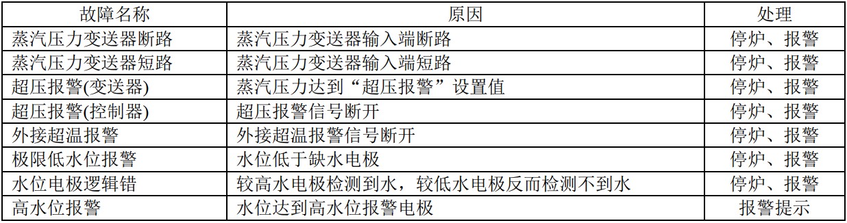 3、如發(fā)生缺水、超溫、超壓等報警時,應(yīng)及時排除故障狀態(tài)方可恢復(fù)運行;如柜內(nèi)帶有報警蜂鳴器(220V AC),則首先應(yīng)關(guān)閉報警音,蜂鳴器連續(xù)工作不可超過 30 秒。